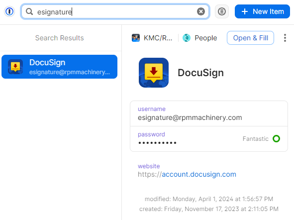 Search for the application (in this example, DocuSign)